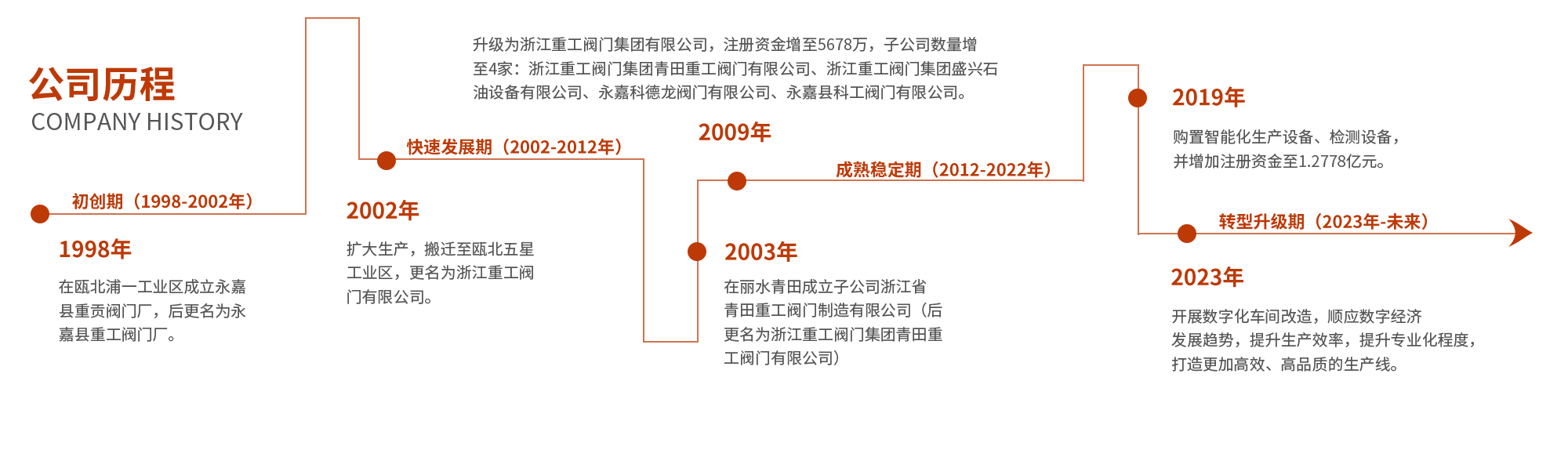 浙江重工閥門集團(tuán)始創(chuàng)于1999年,總部座落在溫州永嘉甌北五星工業(yè)區(qū),總占地面積23800多平方,注冊(cè)資金1.2778億元,集團(tuán)旗下?lián)碛?家子公司,其中全資子公司3家,控股公司2家。公司采用先進(jìn)的管理模式,實(shí)行產(chǎn)品專業(yè)化分類生產(chǎn)和銷售,提高產(chǎn)品質(zhì)量。主要生產(chǎn)基地分布在:浙江溫州、麗水和青田等地,是一家集產(chǎn)品研發(fā)、設(shè)計(jì)、制造與銷售為一體的專業(yè)閥門企業(yè),在溫州甌北總部設(shè)立:辦公中心、科研中心、銷售中心、質(zhì)控中心和全過(guò)程網(wǎng)絡(luò)管理中心……